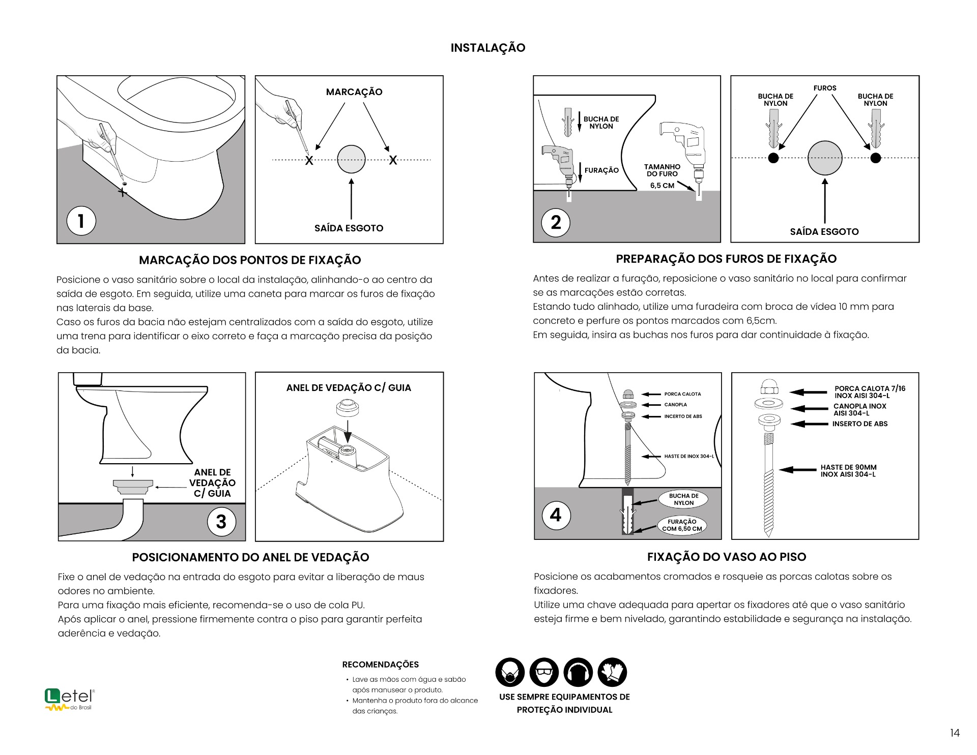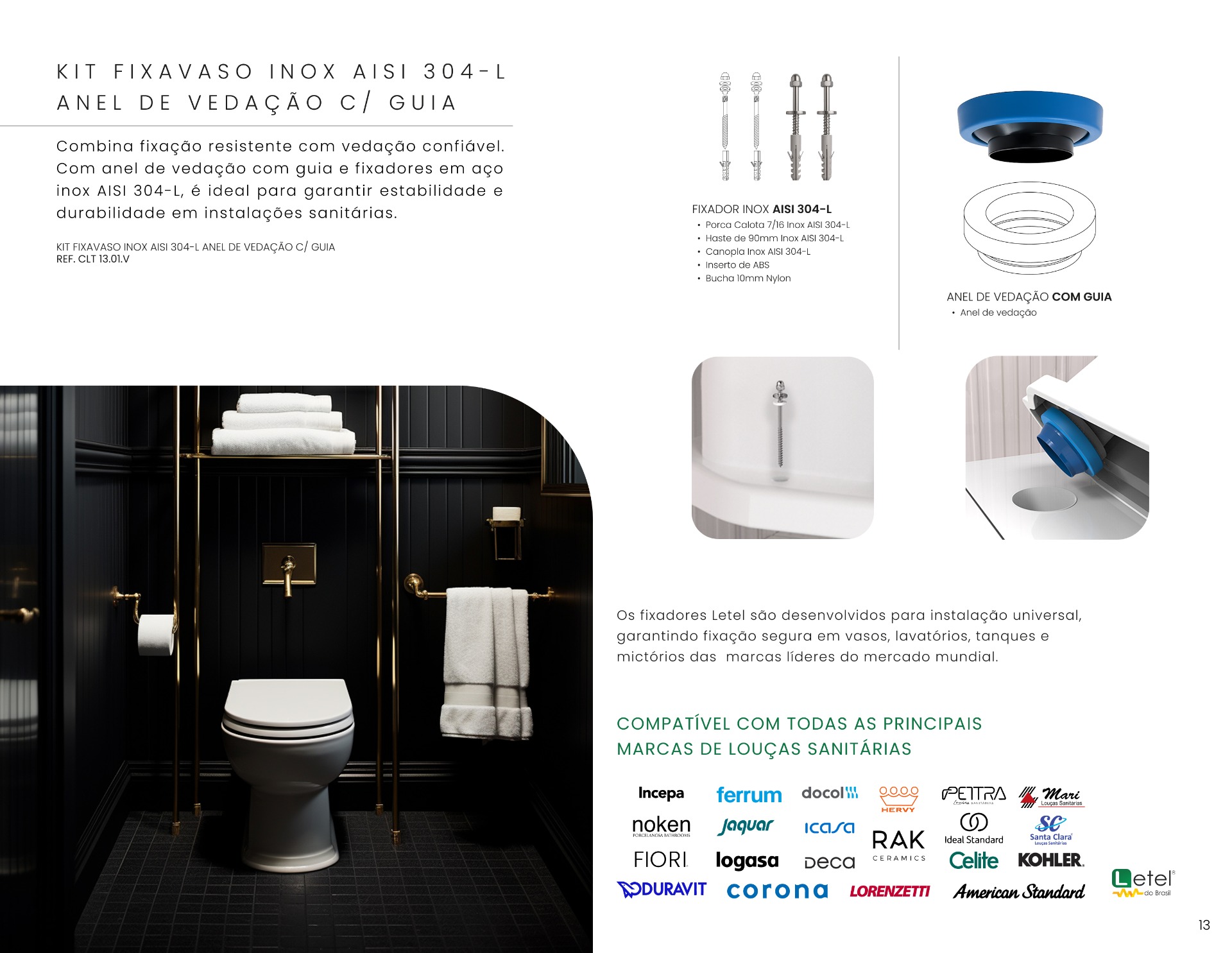 KIT FIXAVASO INOX AISI 304-L ANEL DE VEDAÇÃO C/ GUIA